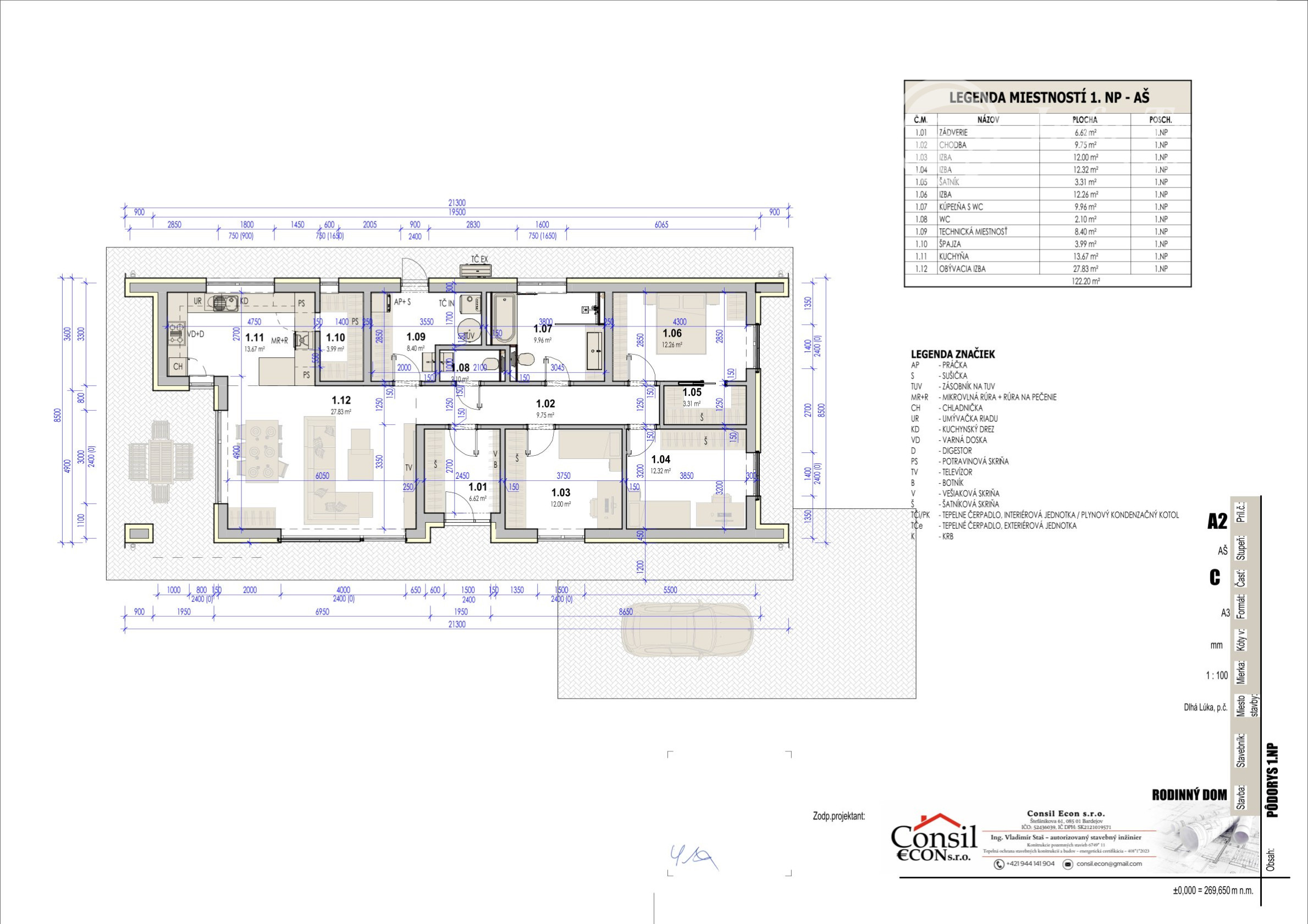 Rodinný dom je určený na bývanie pre rodiny. Je navrhovaný ako samostatne stojaci, jednopodlažný, bez podpivničenia. V čase kolaudácie bude objekt napojený na verejné technické vybavenie územia: